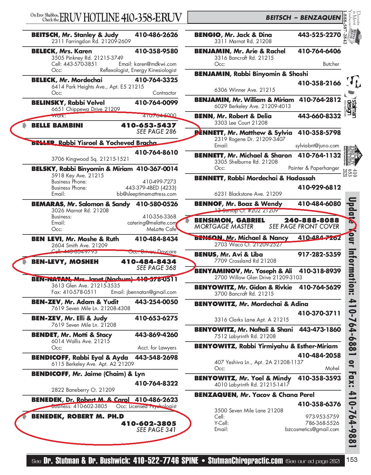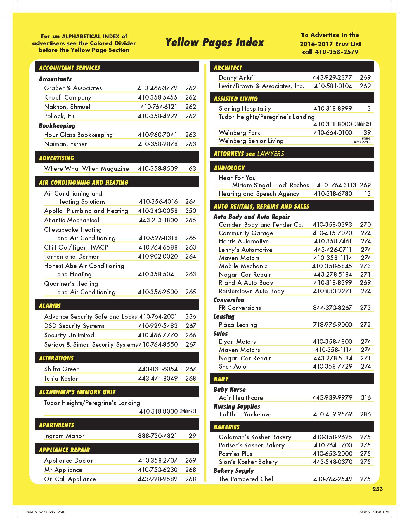 The Eruv List is very well organized. It will be very easy for your clients to find your phone number whether they are searching by subject or by name.